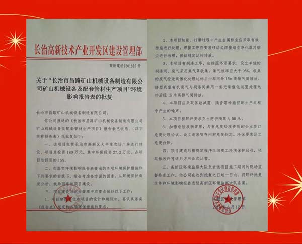 榮獲長(zhǎng)治高新區(qū)環(huán)境影響報(bào)告表的批復(fù)